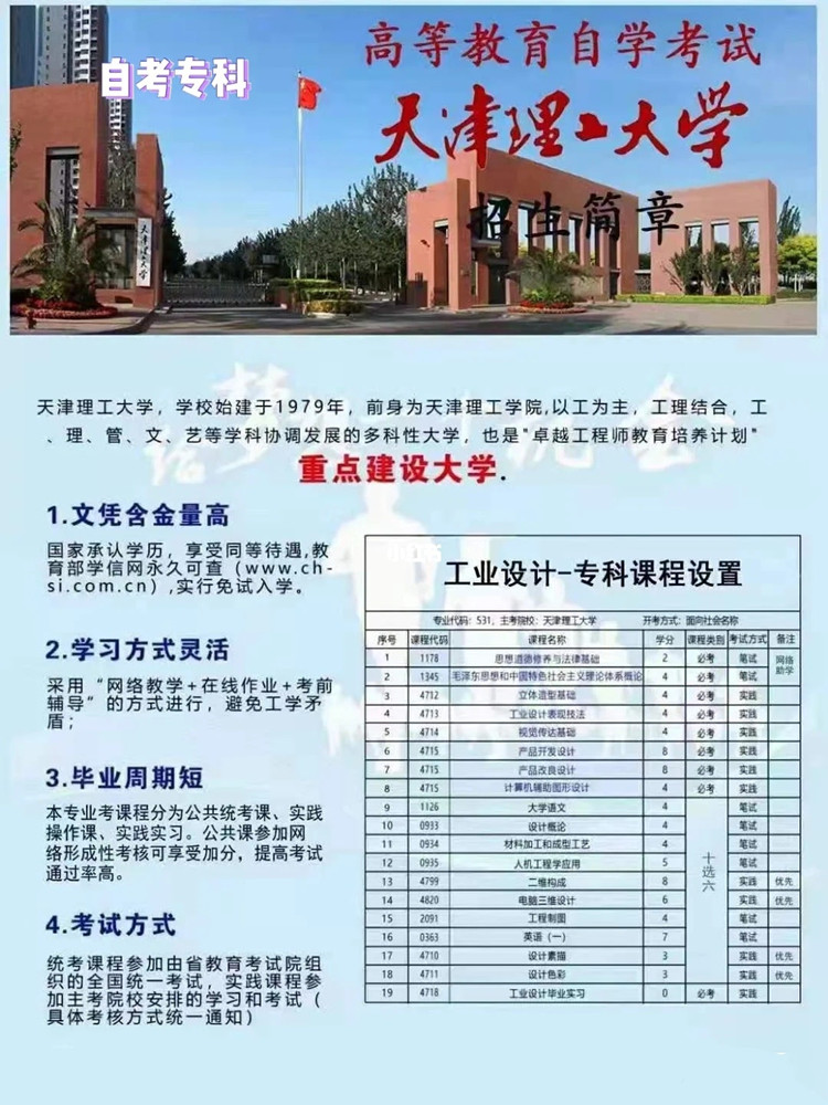 天津理工大学助学工业设计自考大专学历培训