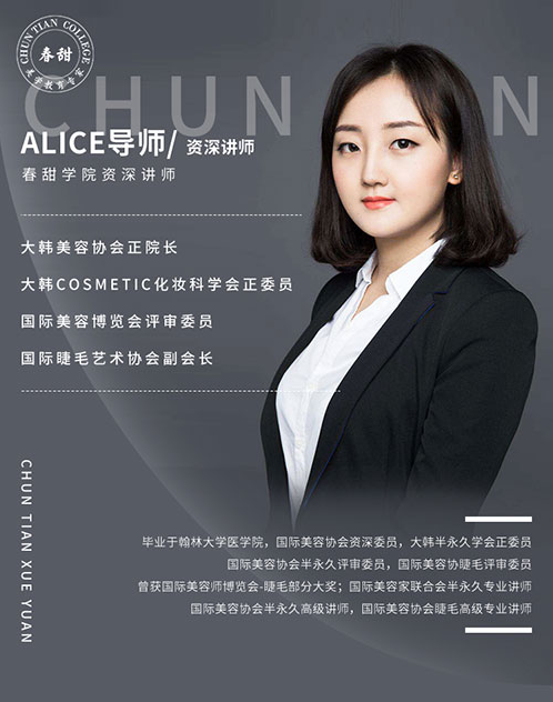 以上就是 北京春甜国际美学教育学院 小编为您整理 Alice导师 的全部内容,更多学习资讯,课程费用,培训时间可咨询在线老师!
